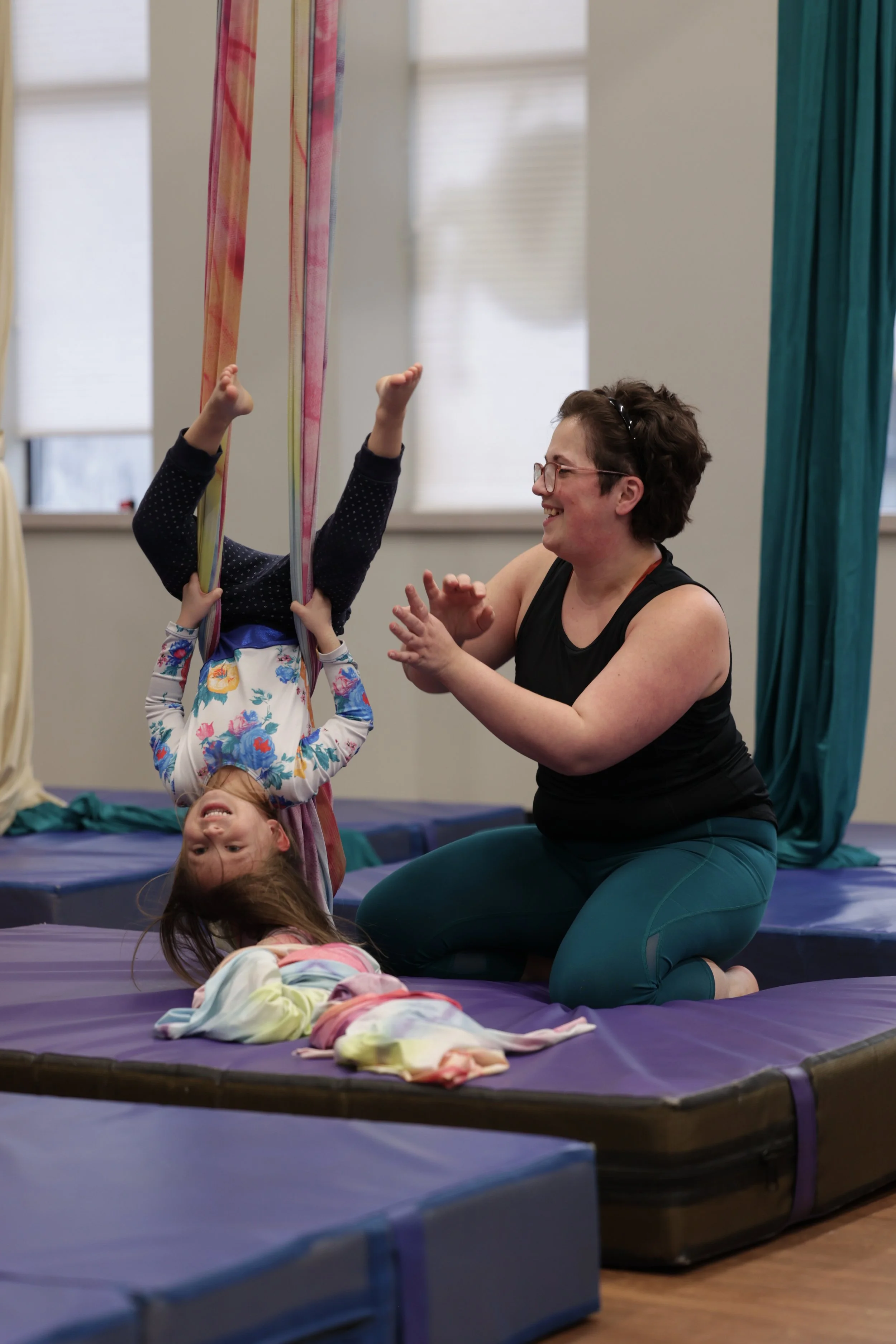 Our staff has years of training on their apparatuses, and years of experience teaching. Additionally, our front desk staff is CPR and First Aid certified, and our teachers are also background checked. Our staff is fully trained to display the compassion and kindness needed to teach youth aerials.